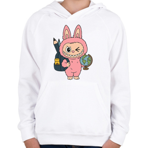 1 kép PRINTFASHION Vissza a suliba Labubu - Gyerek kapucnis pulóver - Fehér