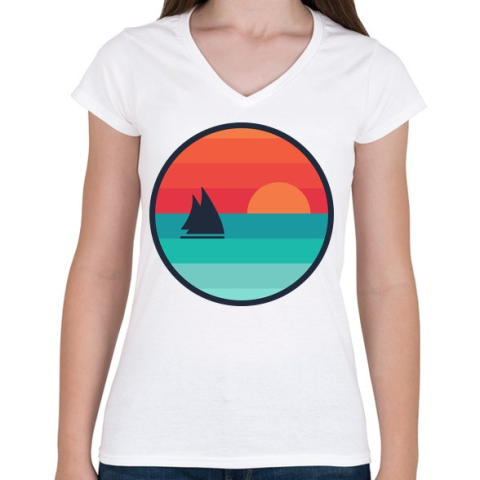 1 kép PRINTFASHION Vitorlás naplementében - Női V-nyakú póló - Fehér