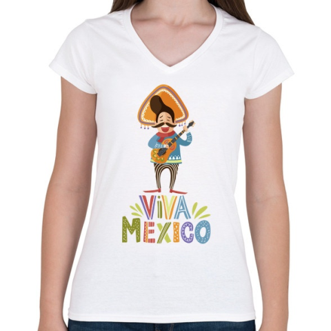 1 kép PRINTFASHION Viva Mexico_ - Női V-nyakú póló - Fehér