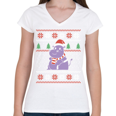 PRINTFASHION Vízilovas csúnya pulcsi - Női V-nyakú póló - Fehér női póló 1 kép