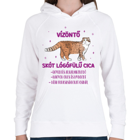 1 kép PRINTFASHION Vízöntő - Skót lógófülű cica - Női kapucnis pulóver - Fehér