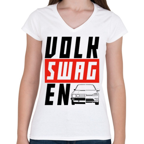 1 kép PRINTFASHION VOLK-SWAG-EN - Női V-nyakú póló - Fehér