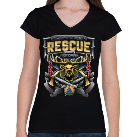 1 kép PRINTFASHION Volunteer Rescue - Női V-nyakú póló - Fekete