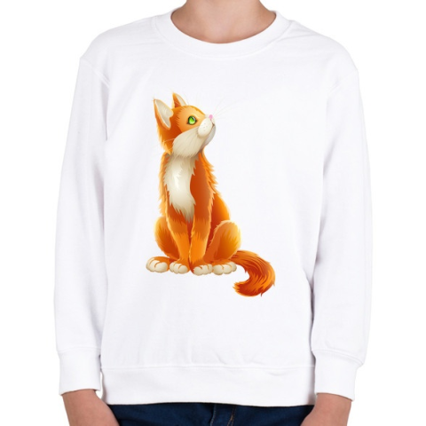 1 kép PRINTFASHION Vörös cica - Gyerek pulóver - Fehér
