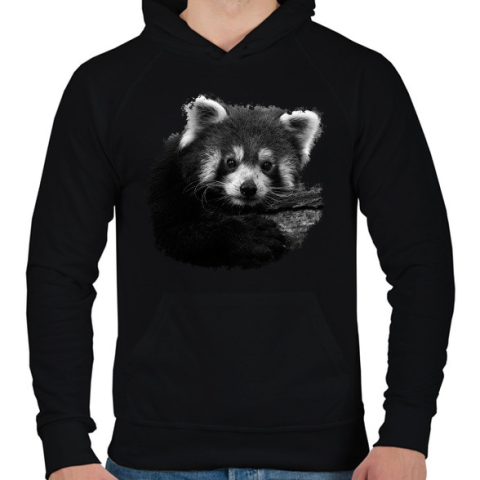 1 kép PRINTFASHION Vörös panda (fekete-fehér újság) - Férfi kapucnis pulóver - Fekete