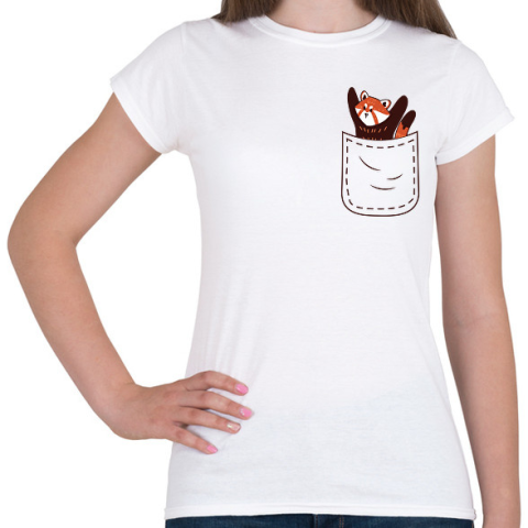 1 kép PRINTFASHION Vörös panda zsebben - Női póló - Fehér