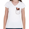 1 kép PRINTFASHION Vörös panda zsebben - Női V-nyakú póló - Fehér