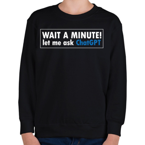 1 kép    PRINTFASHION Wait a minute - Gyerek pulóver - Fekete