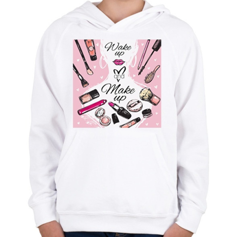 1 kép PRINTFASHION Wake up & Make up - Gyerek kapucnis pulóver - Fehér
