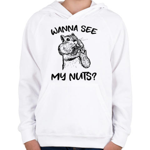 1 kép PRINTFASHION Wanna see my nuts? - Gyerek kapucnis pulóver - Fehér
