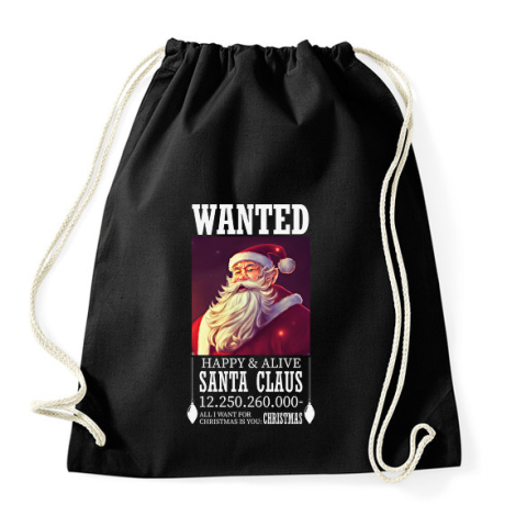 1 kép PRINTFASHION Wanted Santa Claus - Sportzsák, Tornazsák - Fekete