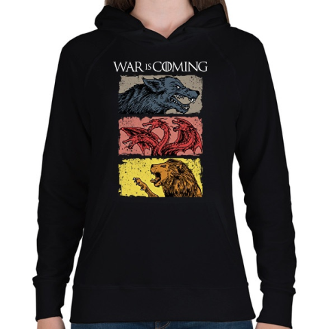 1 kép PRINTFASHION War is Coming - Női kapucnis pulóver - Fekete