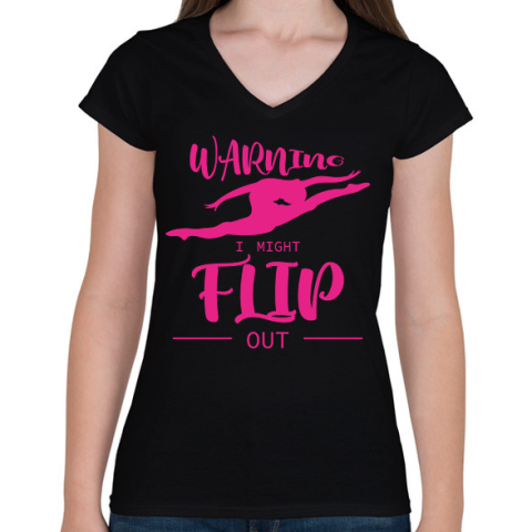1 kép PRINTFASHION Warning - I might flip out - Női V-nyakú póló - Fekete