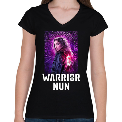 1 kép PRINTFASHION Warrior Nun - Női V-nyakú póló - Fekete