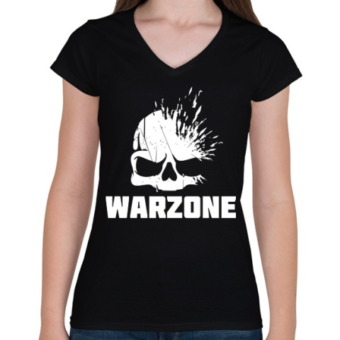 1 kép PRINTFASHION Warzone fejlövés - Női V-nyakú póló - Fekete
