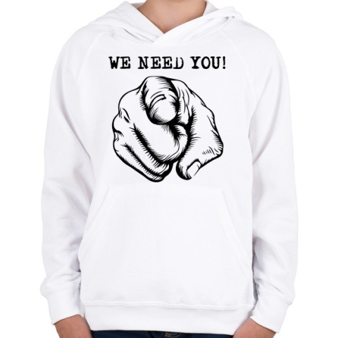 1 kép PRINTFASHION We need you - kellesz nekünk - Gyerek kapucnis pulóver - Fehér