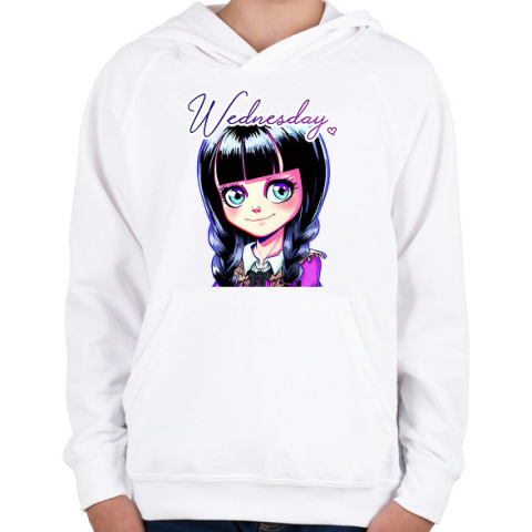 1 kép PRINTFASHION Wednesday Addams - Gyerek kapucnis pulóver - Fehér