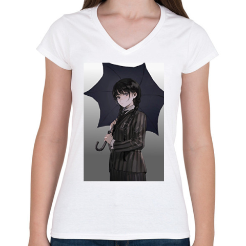 1 kép PRINTFASHION Wednesday anime - Női V-nyakú póló - Fehér