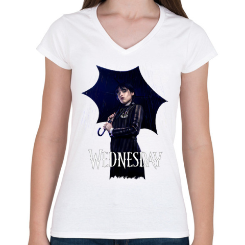 1 kép PRINTFASHION Wednesday art - Női V-nyakú póló - Fehér