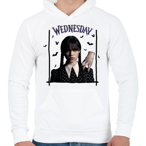 1 kép PRINTFASHION Wednesday és Izé - Férfi kapucnis pulóver - Fehér