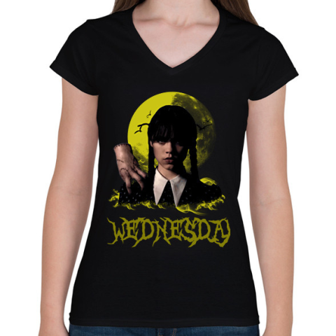 1 kép PRINTFASHION Wednesday és Izé - Női V-nyakú póló - Fekete