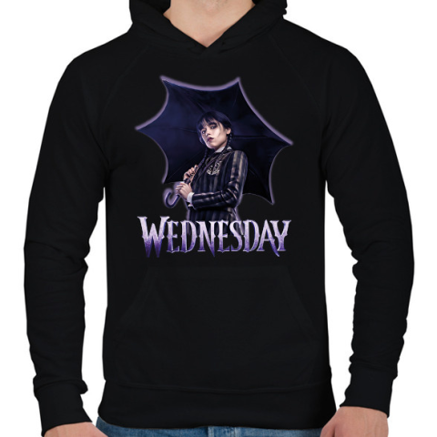1 kép PRINTFASHION Wednesday - Férfi kapucnis pulóver - Fekete
