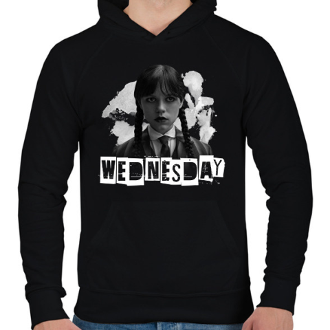 1 kép PRINTFASHION wednesday - Férfi kapucnis pulóver - Fekete