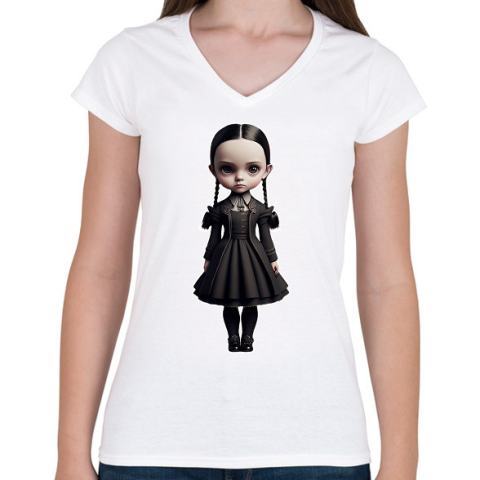 1 kép PRINTFASHION Wednesday - Gót stílusú illusztráció - Női V-nyakú póló - Fehér