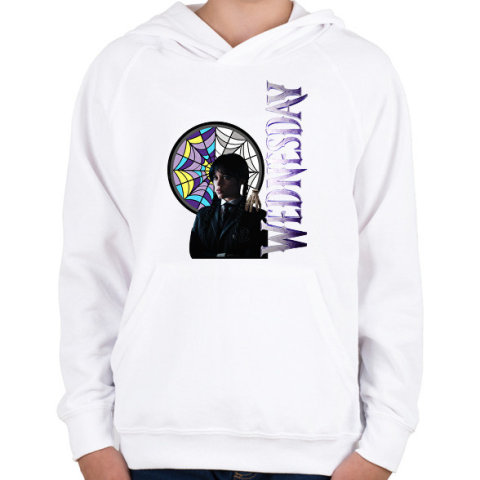 1 kép PRINTFASHION Wednesday - Gyerek kapucnis pulóver - Fehér