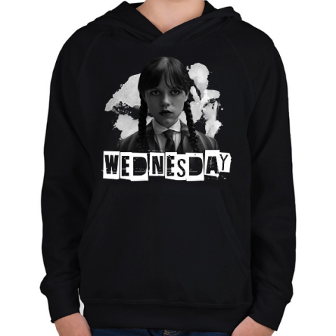 1 kép PRINTFASHION wednesday - Gyerek kapucnis pulóver - Fekete