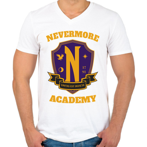 1 kép PRINTFASHION Wednesday Nevermore logo - Férfi V-nyakú póló - Fehér