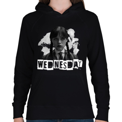 1 kép PRINTFASHION wednesday - Női kapucnis pulóver - Fekete