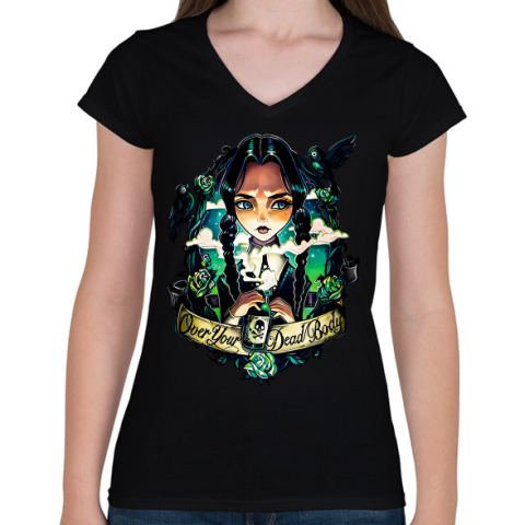 1 kép PRINTFASHION Wednesday over your dead body - Női V-nyakú póló - Fekete