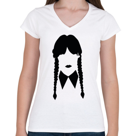 1 kép PRINTFASHION Wednesday sziluett - Női V-nyakú póló - Fehér
