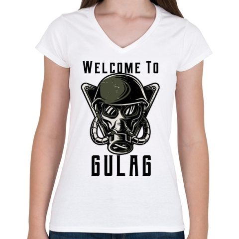 1 kép PRINTFASHION Welcome to Gulag - Női V-nyakú póló - Fehér