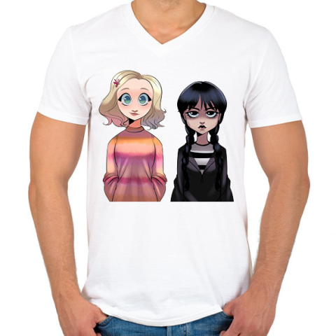 1 kép PRINTFASHION Wendesday Addams - Férfi V-nyakú póló - Fehér
