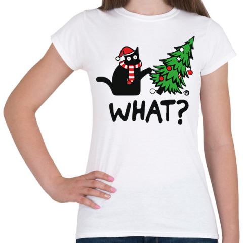 1 kép PRINTFASHION What? - Karácsonyos macska - Női póló - Fehér