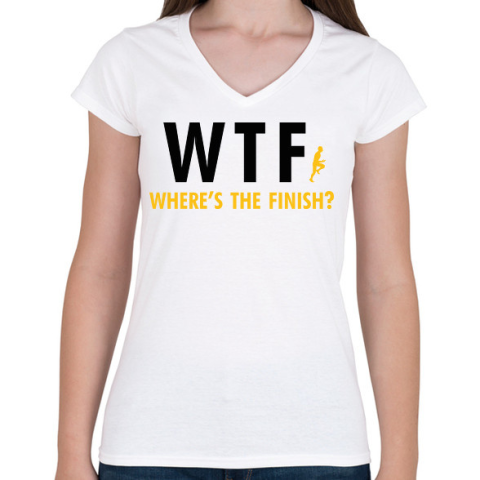 1 kép PRINTFASHION Where's the finish? - Női V-nyakú póló - Fehér