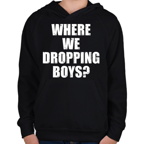 1 kép PRINTFASHION Where we dropping boys? - fehér - Gyerek kapucnis pulóver - Fekete