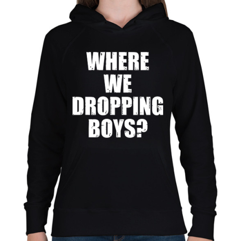 1 kép PRINTFASHION Where we dropping boys? - fehér - Női kapucnis pulóver - Fekete