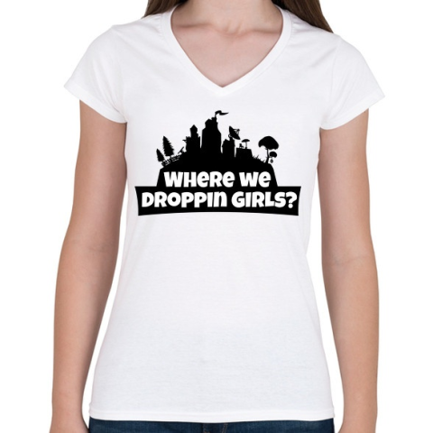 1 kép PRINTFASHION WhereWeDroppingGirls - Női V-nyakú póló - Fehér