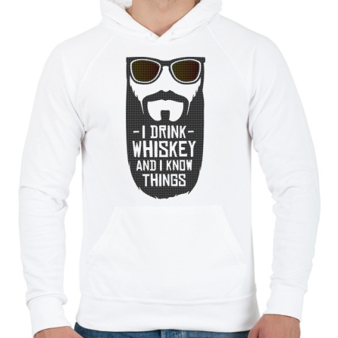 1 kép PRINTFASHION Whiskey-t iszok és tudok dolgokat - Férfi kapucnis pulóver - Fehér