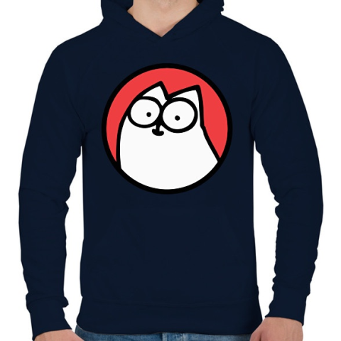 1 kép PRINTFASHION White cat - Férfi kapucnis pulóver - Sötétkék