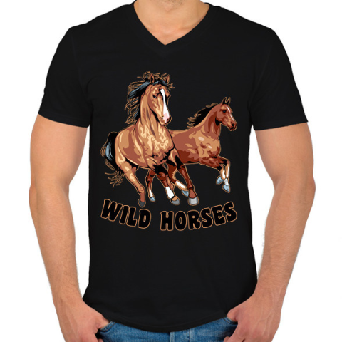 1 kép PRINTFASHION Wild horses - Férfi V-nyakú póló - Fekete