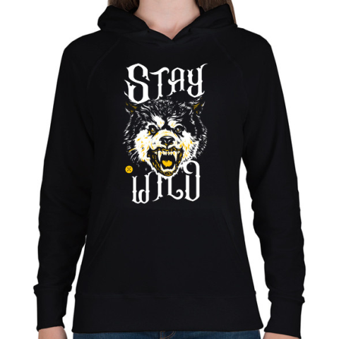 1 kép PRINTFASHION WildRaccooN® StayWild - Női kapucnis pulóver - Fekete