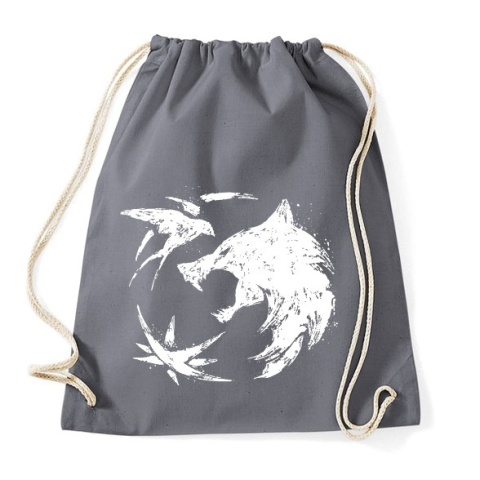1 kép PRINTFASHION Witcher farkas fehér - Sportzsák, Tornazsák - Grafitszürke