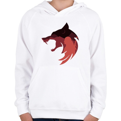 1 kép PRINTFASHION Witcher Red Wolf - Gyerek kapucnis pulóver - Fehér
