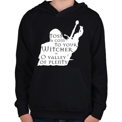 1 kép PRINTFASHION Witcher - Toss a coin... - Gyerek kapucnis pulóver - Fekete