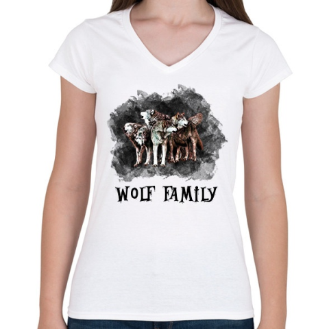 1 kép PRINTFASHION wolf family - Női V-nyakú póló - Fehér