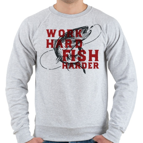 1 kép PRINTFASHION Work Hard Fish Harder - Férfi pulóver - Sport szürke